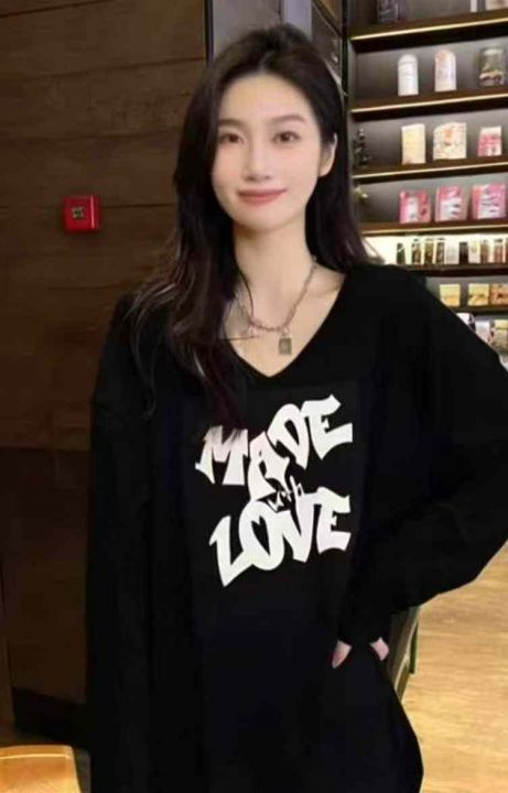 春秋新款宽松百搭慵懒风字母印花V领套头毛衣,独立包...
