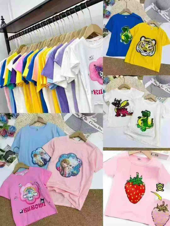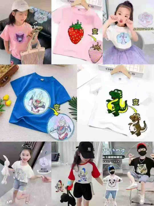 工艺款,儿童纯棉翻转亮片变色短袖t恤