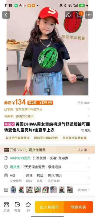 工艺款,儿童纯棉翻转亮片变色短袖t恤数量:19200件,...