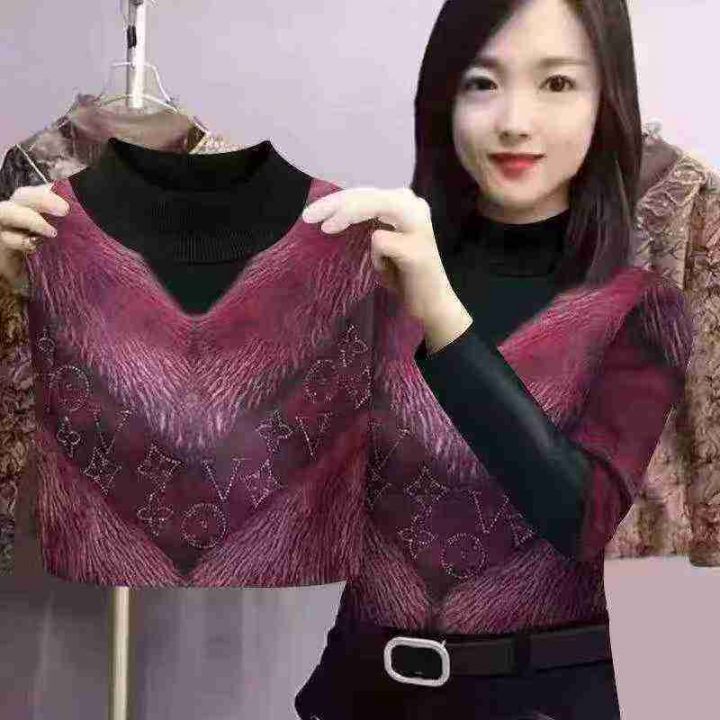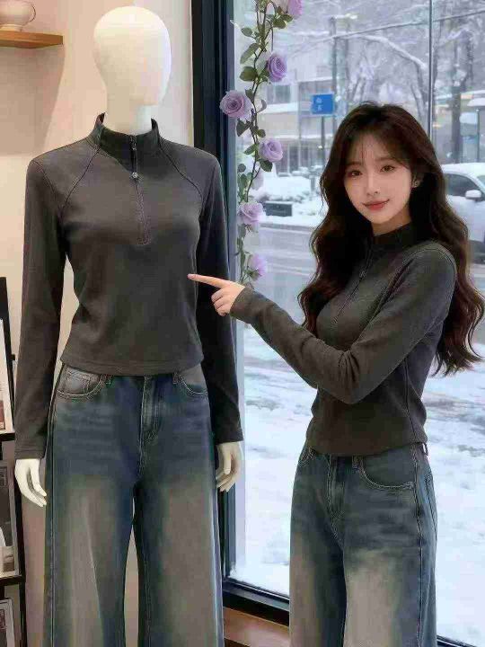 秋冬新款时尚净版简约半高领保暖德绒打底大码宽松慵懒风长袖t恤,独立包装...