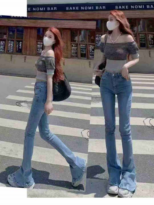 ☕️高弹力春秋新款微喇牛仔裤女高腰显瘦小个子九分开叉喇叭裤子女毛边 70...