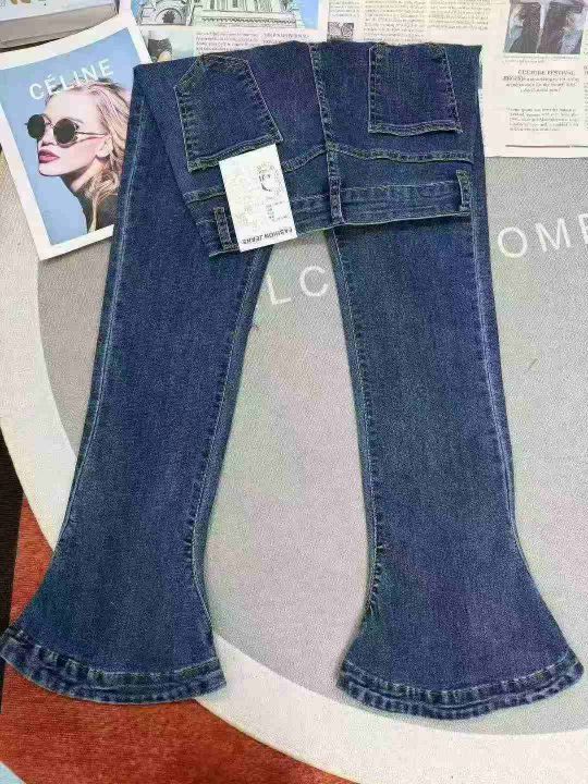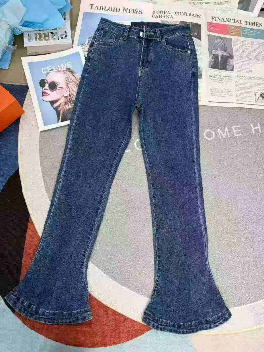 弹力蓝色马蹄女士喇叭显瘦修身拖地牛仔裤,单款单色,数量150,26-32码,福利价13.8秒杀(601·886#)