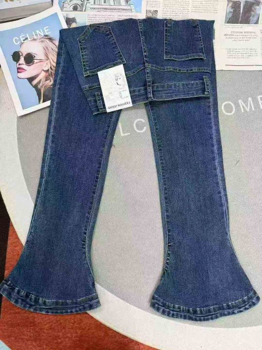 弹力蓝色马蹄女士喇叭显瘦修身拖地牛仔裤,单款单色,数量150,26-32码,福利价13.8秒杀(601·886#)