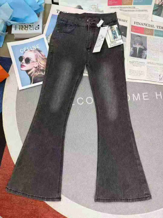 黑灰色高腰微喇女士显瘦辣妹修身弹力马蹄牛仔裤,单款单色,独立包装,数量135条,S-2XL码,福利价14.8秒杀(610·3383#)