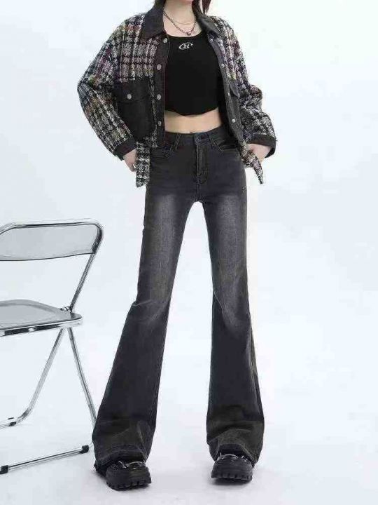 ☕️高弹力春秋新款微喇牛仔裤女高腰显瘦小个子九分开叉喇叭裤子女毛边 70...