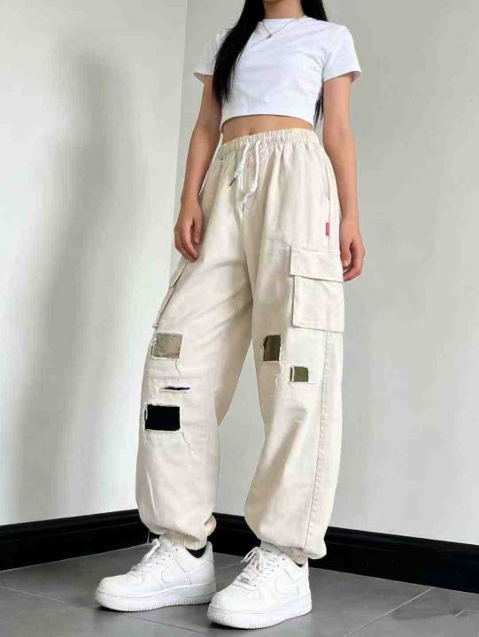 450件[红包]港风秋冬新款,潮牌炸街补丁女装工装裤,宽松口袋休闲潮流百搭...