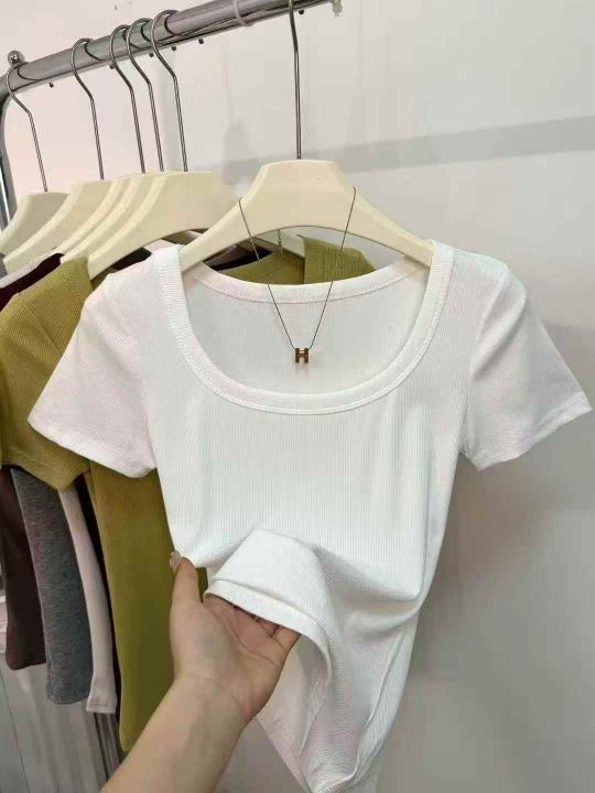辣妹短袖T恤夏季正肩新款修身显瘦短款上衣,独立包装...