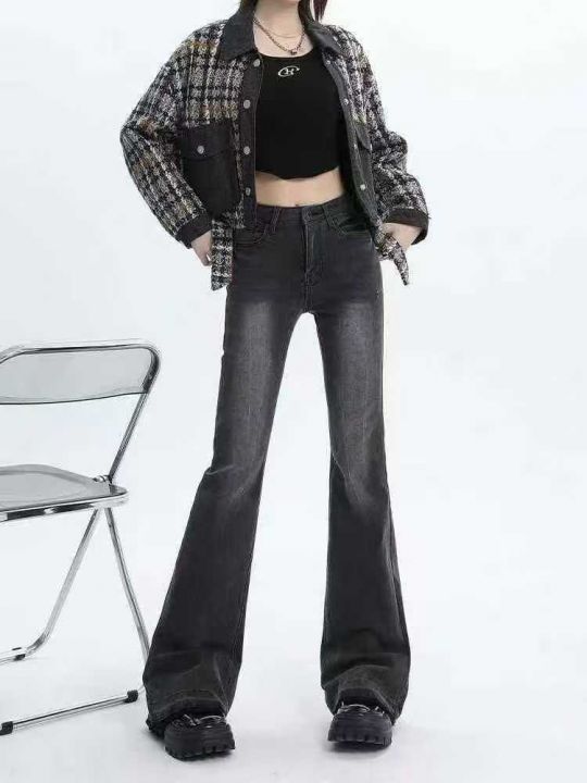 高腰显瘦辣妹马蹄喇叭弹力牛仔裤子,单款单色,数量50...