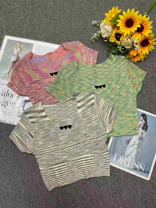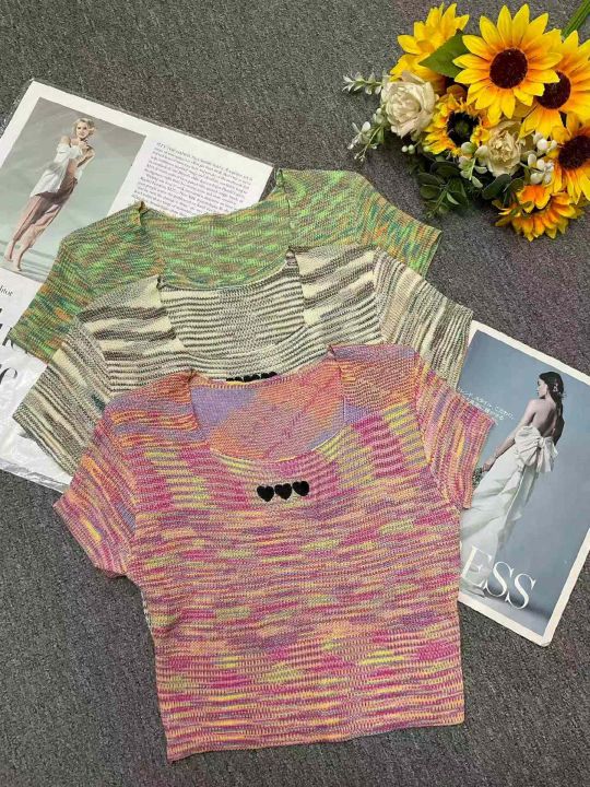 夏季新款撞色彩虹条纹刺绣针织短袖T桖,独立包装,均码面料柔软舒适弹力大,682件,全清5.9元超低价秒杀!分货加一!
