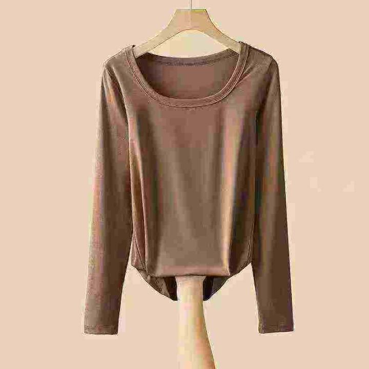 清6.8分货➕0.5方领内搭打底衫新款女U领长袖t恤春秋冬...