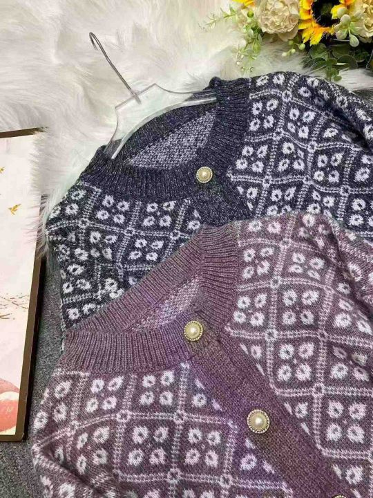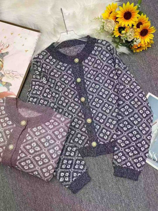 秋冬新款复古提花宽松慵懒风加厚毛衣开衫,独立包装,...