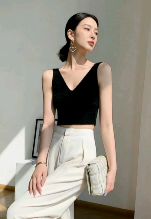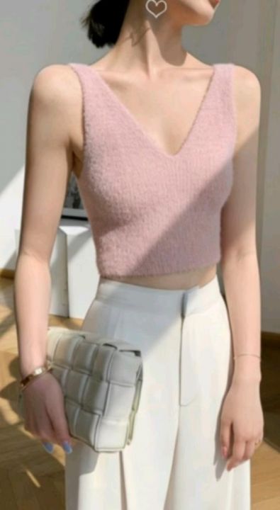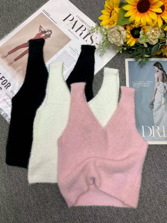 高品质网红爆款净版简约百搭水貂毛针织毛衣吊带背心,...