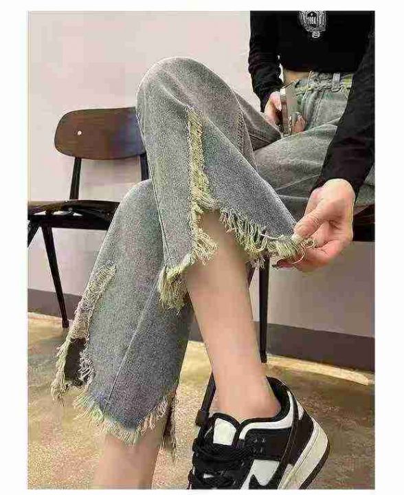 直筒牛仔裤女夏季高腰宽松毛边乞丐阔腿裤145条全清11.8元,码数S到XL,正品...