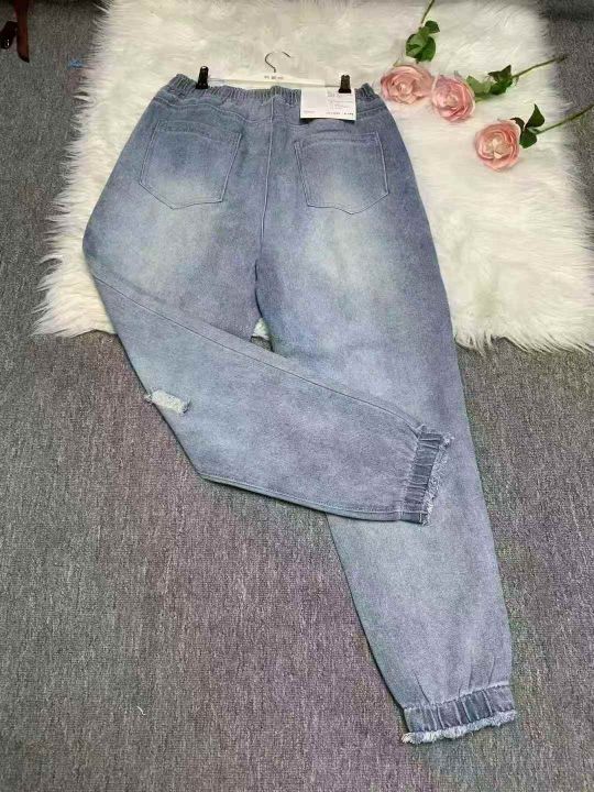 男士破洞牛仔裤2025新款宽松束脚百搭哈伦潮裤100件,...
