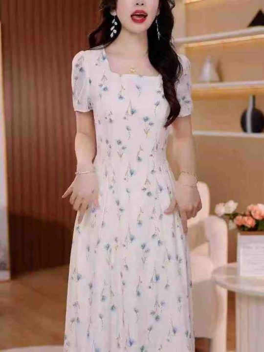 法式方领碎花连衣裙2025夏季新款收腰显瘦气质130件,...