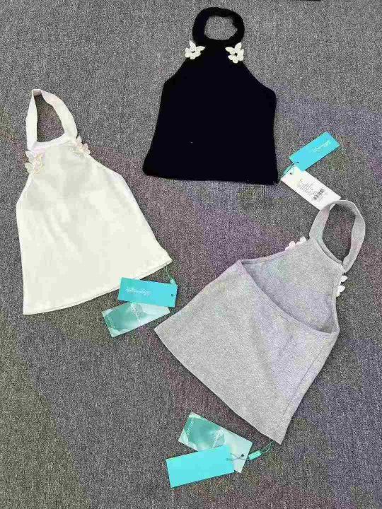 220件品牌甜辣风挂脖背心,单款3色,均码,面料螺纹棉跟纯棉。(模特图仅供参考上身效果)