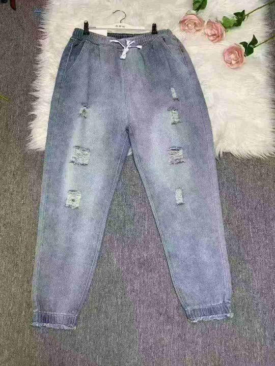 男士破洞牛仔裤2025新款宽松束脚百搭哈伦潮裤100件,独立包装带吊牌,尺码M~3XL,全清福利价9.9元