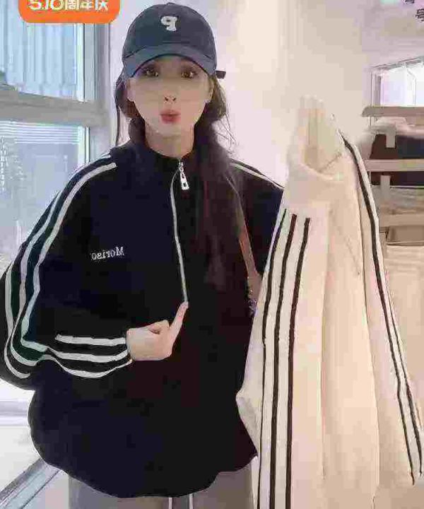 潮牌不加绒卫衣☕️210件全清9.9元,单款4个色,独立包装,半拉链翻领卫衣女春秋薄款宽松韩系运动风三条杠高街潮牌卫衣