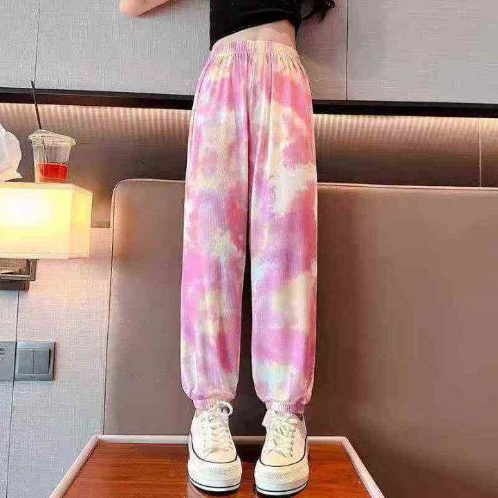 童装冰丝裤,女童夏季速干休闲束脚彩色冰丝裤,松紧腰...