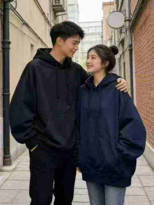 春秋新款宽松净版简约男女同款连帽卫衣,独立包装,有...