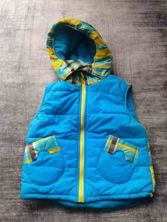 儿童棉马甲冬季款男女童加厚马甲连帽拉链背心中大童. 5件一包装. 5岁一1 2岁左右,4 8 0件. 清货价5.8块. 分货加5毛