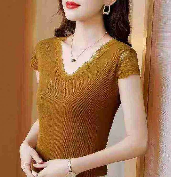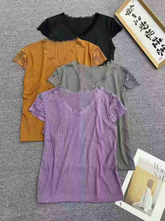 冰丝蕾丝上衣305件4.9,面料柔软高弹力,蕾丝拼接设计...