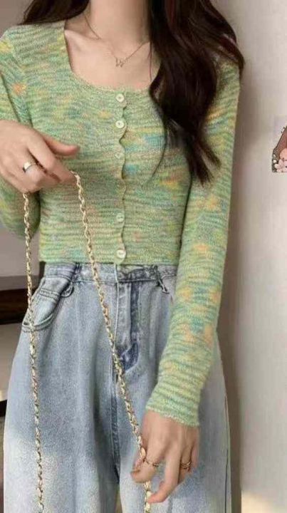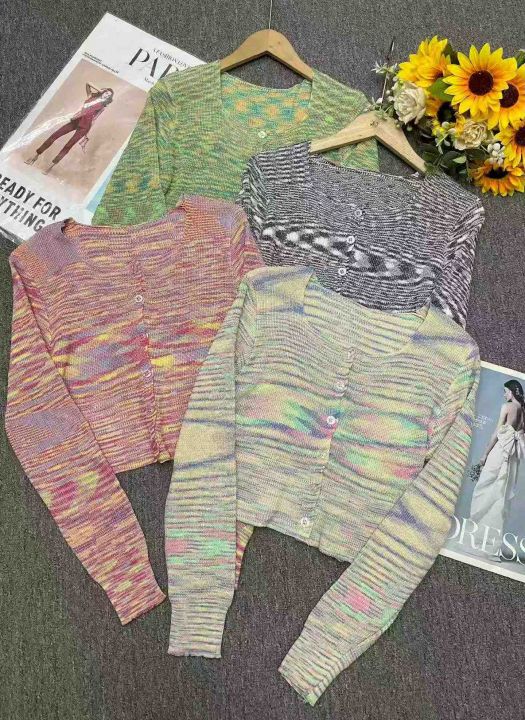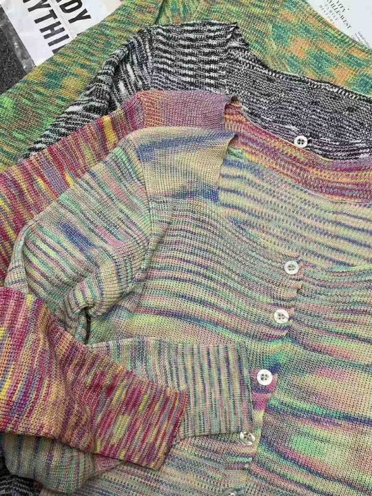 春秋新款网红复古撞色彩虹条纹针织毛衣开衫,独立包装...
