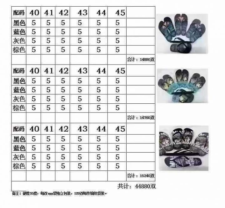 非洲单。硬底(55度)人字拖男鞋 40 - 45……29000 pcs