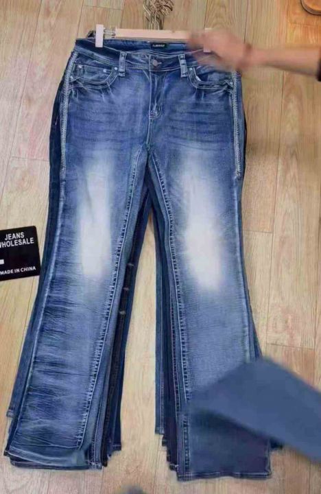 #Jeans wholesale外单高弹力微喇叭修身图片系列款牛仔...