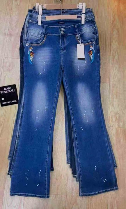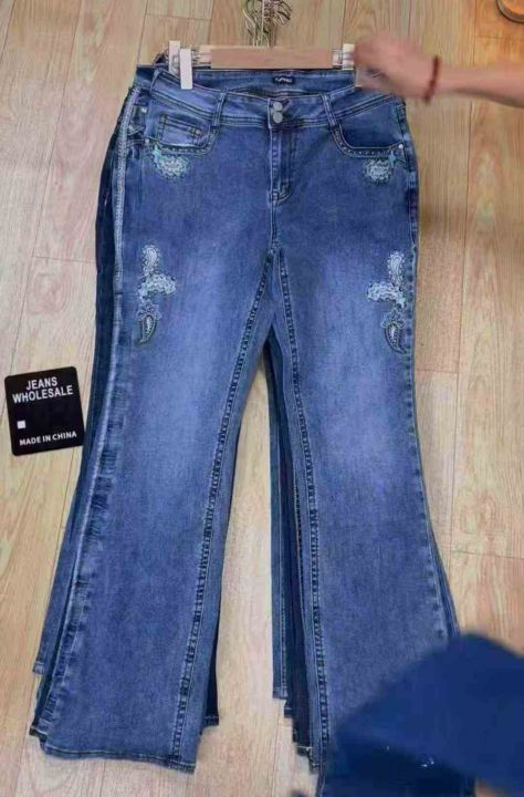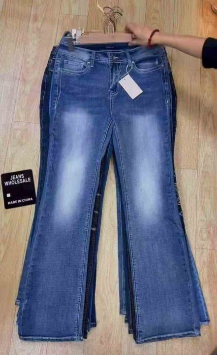外单高弹力微喇叭修身图片系列款牛仔裤,数量1100条,尺码s-3xl码(版型偏大偏长),独立包装带吊牌,重工艺绣花款。有的绣花是在后口袋上。低价批发13.9秒杀