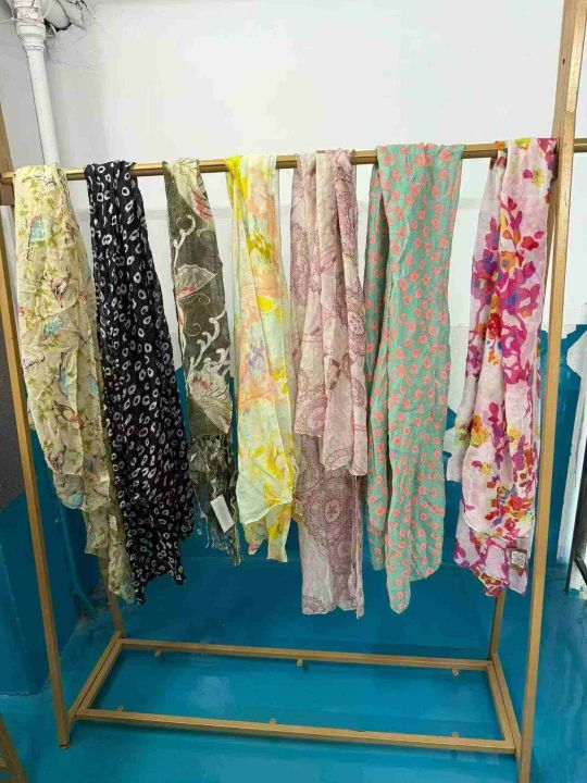 爆款围巾热带植物花卉亮色棉麻手感好花纹多色沙滩巾挂流苏披肩,原包装商标吊牌价几百,6800条左右,全清1.99块,分货加0.5