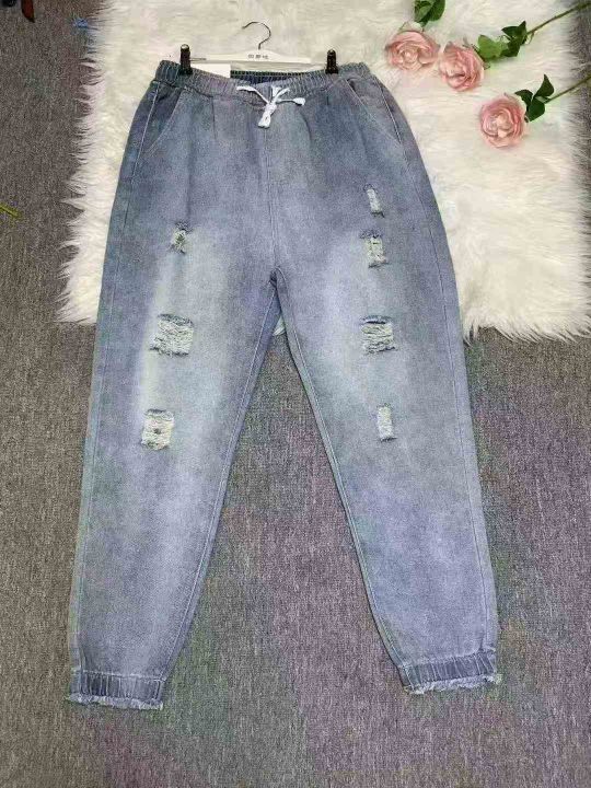 男士破洞牛仔裤2025新款宽松束脚百搭哈伦潮裤100件,...