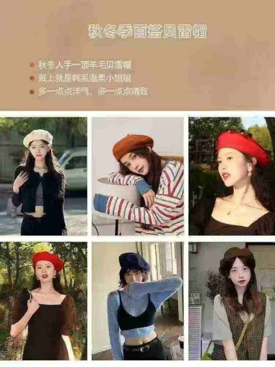 上新实体店下架时尚女装羊毛贝蕾帽 110个 单款7个色 含羊毛91.5%. 货...