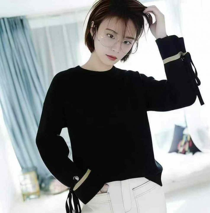 秋冬新款法式复古欧洲站时尚圆领宽松显瘦百搭加厚圆领...