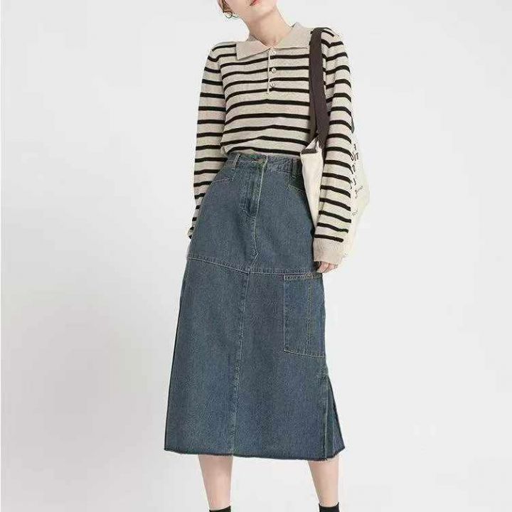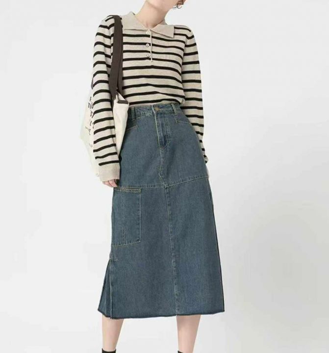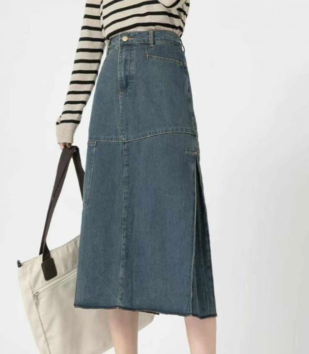 春秋新款大码女装洗水棉网红复古蓝牛仔半身长裙,独立...