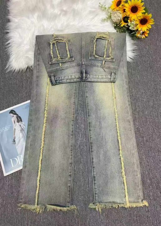 秋冬新款洗水棉网红高街高腰美式复古辣妹直筒黄泥染牛...