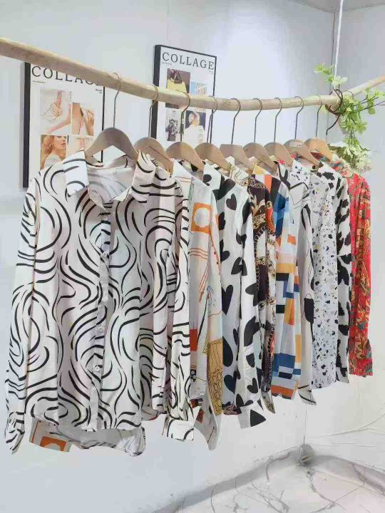 数量1500件,长袖花衬衫,梭织面料,面料厚实冰凉,有坠感,全部独立包装,分货➕1码数,S一2XL
