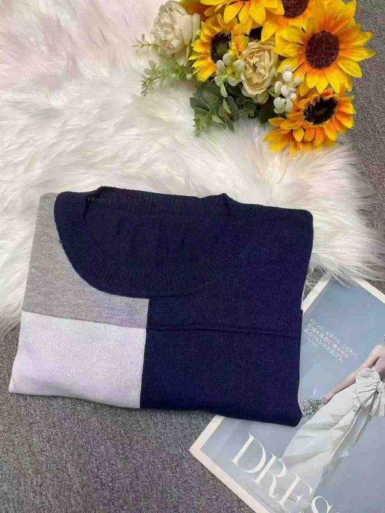 秋冬新款撞色拼接设计款宽松百搭轻熟女装圆领套头毛衣,独立包装,均码面料柔软舒适,190件,全清6.9元超低价秒杀!。 货号:24862