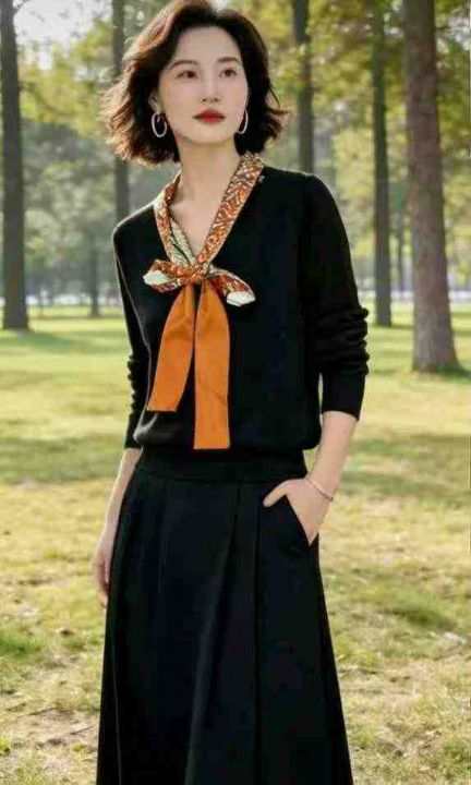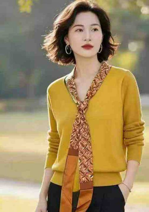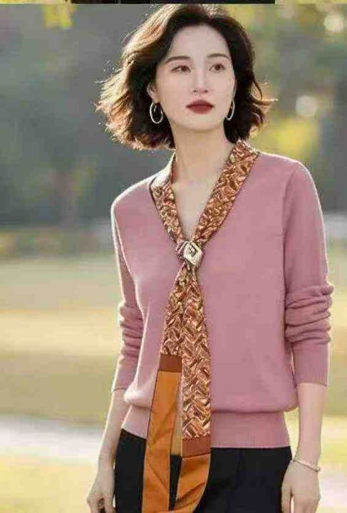 秋冬新款独特超好看碎花飘带V领时尚洋气针织套头毛衣...