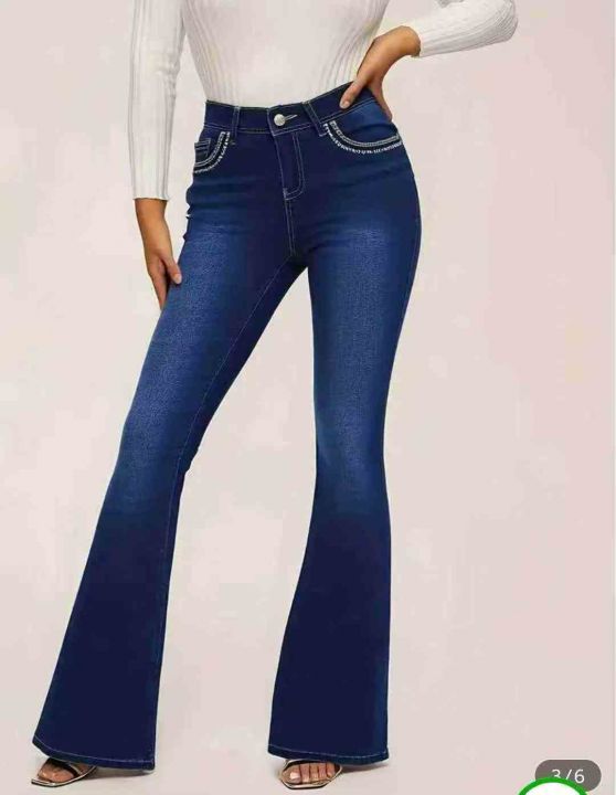 #Jeans wholesale外单高弹力微喇叭修身图片系列款牛仔...