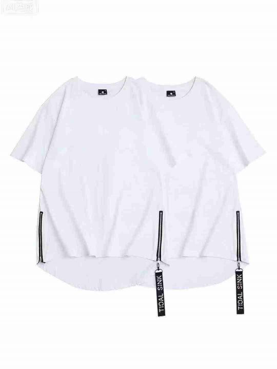 整款纯色短袖男女同款侧边拉链圆弧下摆嘻哈潮流风格296件 独立包装S-5XL全...