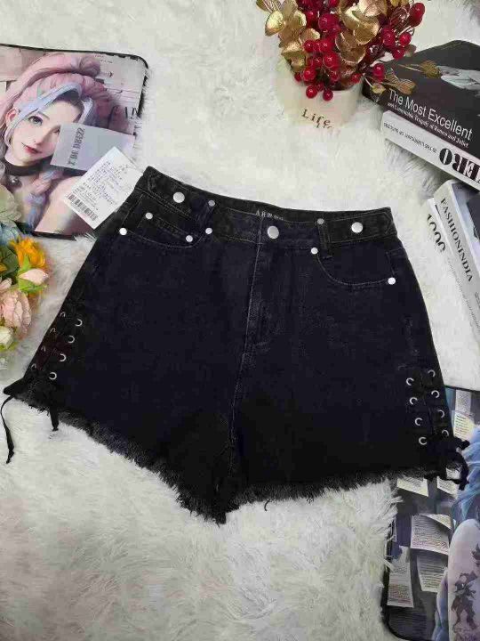 美式甜辣风黑色牛仔短裤女夏季设计感毛边绑带a字热裤153条,码数ML,独立包装带吊牌
