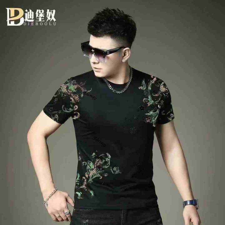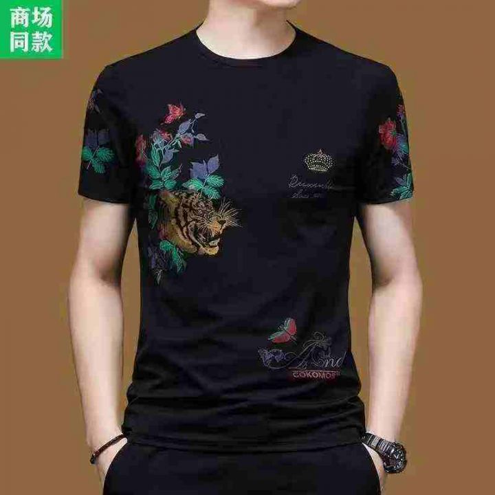 夏季男士短袖T恤印花圆领冰丝上衣中潮流体恤,几个花...