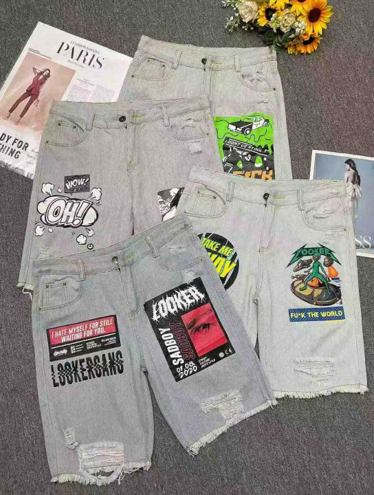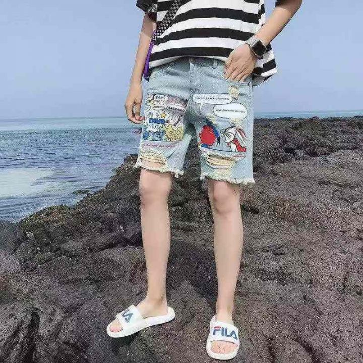 夏季新款时尚个性卡通印花男士牛仔短裤,独立包装,码...