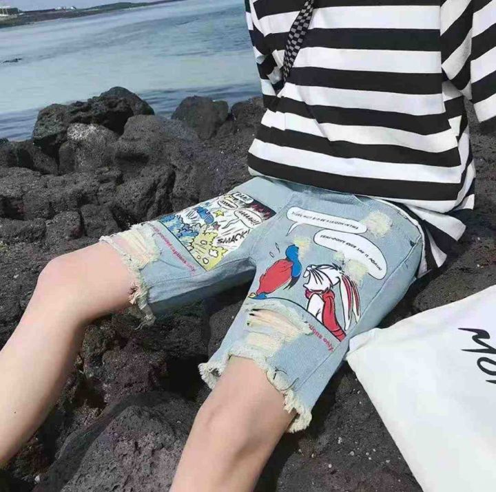 夏季新款时尚个性卡通印花男士牛仔短裤,独立包装,码数L-3XL码,400件,全清6.8元超低价秒杀!分货加一!