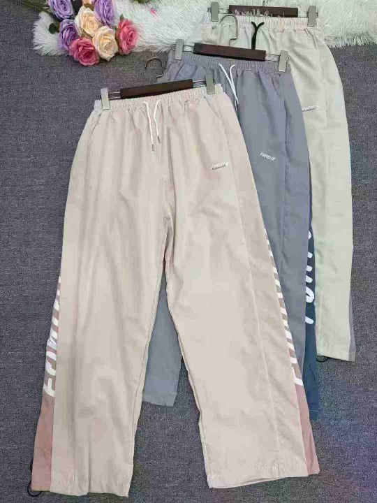 523条,港风休闲裤女2025夏季新款宽松阔腿裤薄款抽绳束脚拼接学生运动裤,独立包装,码数S-3XL,全清7.8元,分货➕0.5