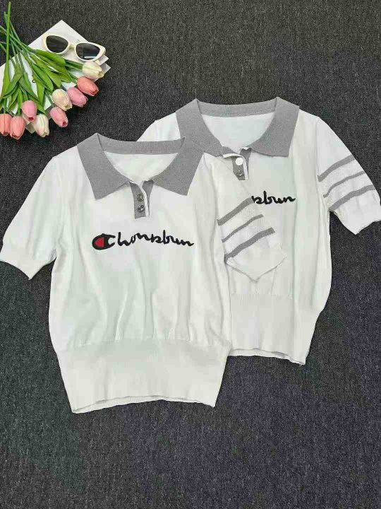 针织收腰夏季Polo衫女短袖翻领上衣,独立包装,197件...