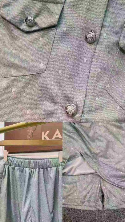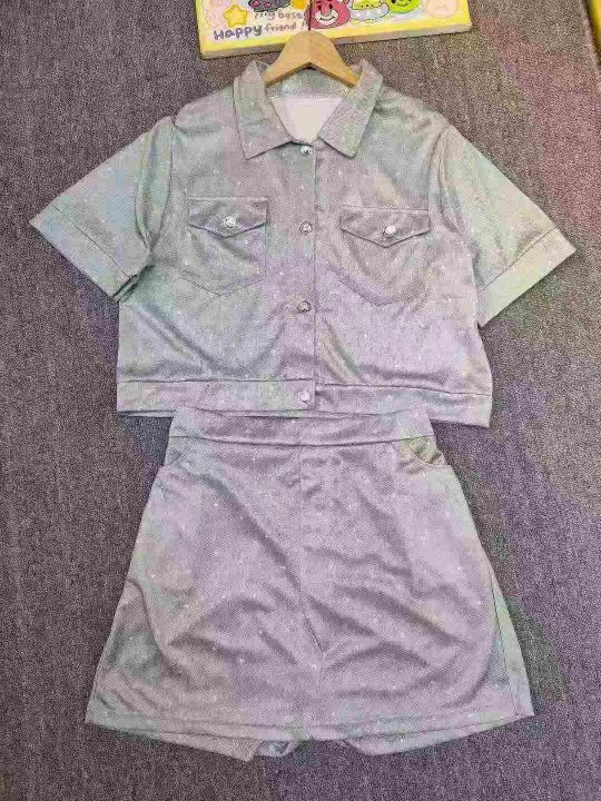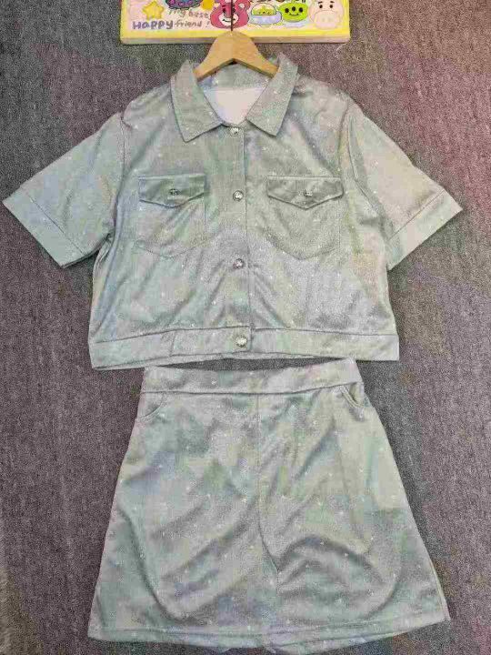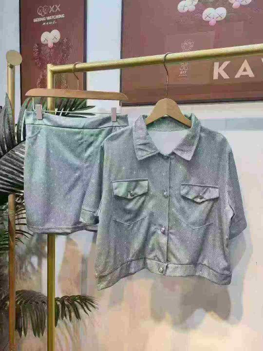 1270套时尚靓妹女装夏季休闲套装裤裙 上衣纽扣解 半松紧腰裤裙有口袋,单款单色 码数2-6码(M-3XL)独立包装。。 货号:24862