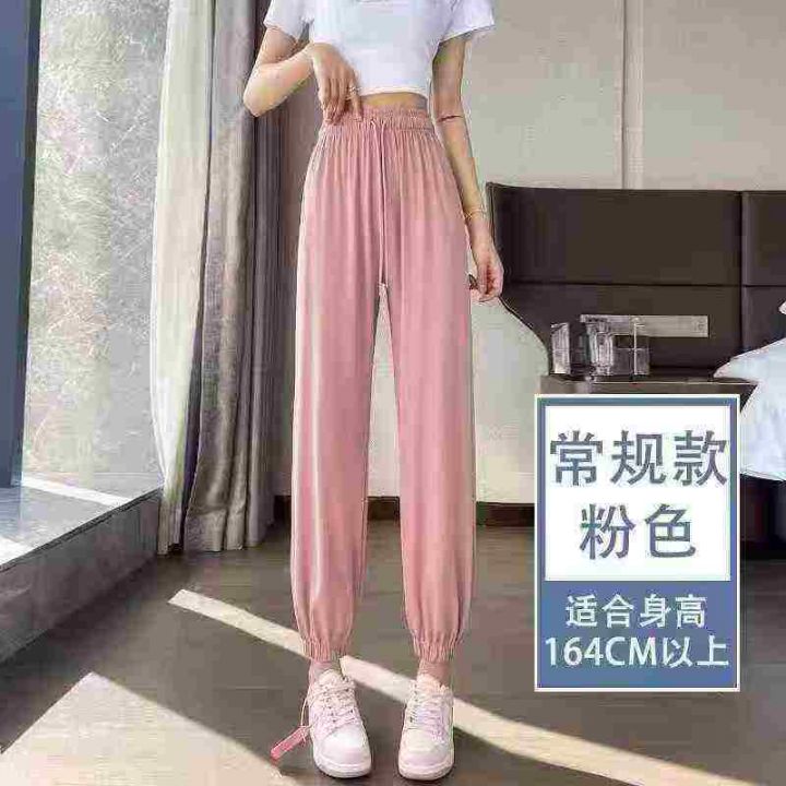 女冰丝束脚休闲运动裤薄款垂感显瘦灯笼裤慵懒山本裤子
