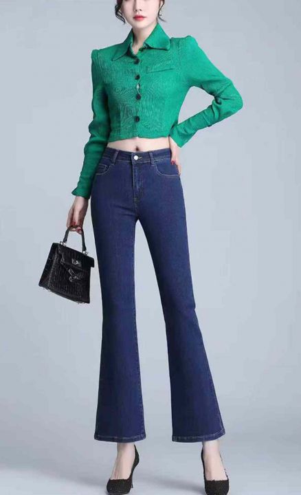春夏季新款弹力修身显瘦微喇叭牛仔裤,独立包装带吊牌...